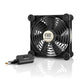 - USB plug can power the fan through USB ports found behind popular AV electronics and game consoles.